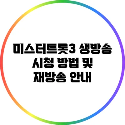 많은 팬들이 기다리고 있는 이 프로그램은 매주 화제의 중심에 서 있습니다. 이 글에서는 미스터트롯3의 생방송 시청 방법과 재방송 공지를 자세히 소개할게요.