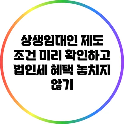 상생임대인 제도 조건 미리 확인하고 법인세 혜택 놓치지 않기