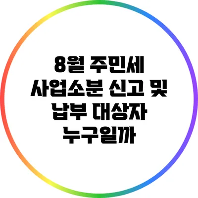 주민세 사업소분의 신고와 납부는 매년 8월, 이상적으로 세금을 미리 준비하는 것과 밀접하게 연결되어 있어요. 특히, 올해 모든 사업자들에게 이러한 의무가 부여되면서 그 중요성이 더 부각되고 있어요. 사업자의 신뢰와 세금 의무를 이행하는 것은 아무리 강조해도 지나치지 않아요. 주민세 사업소분 신고 및 납부 대상자에 대해 자세히 알아보도록 할게요.