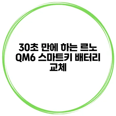 스마트키는 현대 자동차의 필수품으로, 편리한 기능과 이동의 자유를 제공합니다. 하지만 시간이 지나면서 스마트키의 배터리는 소모되기 마련입니다. 특히 르노 QM6의 경우, 배터리 교체가 매우 간단하여 누구나 쉽게 수행할 수 있습니다. 이제 바로 30초 만에 르노 QM6 스마트키의 배터리를 교체하는 방법에 대해 알아보겠습니다. ✅ 르노 QM6 배터리 내구성을 향상시키는 비결을 알아보세요. 👉 QM6 배터리 기술 발전 탐구하기 … Read more